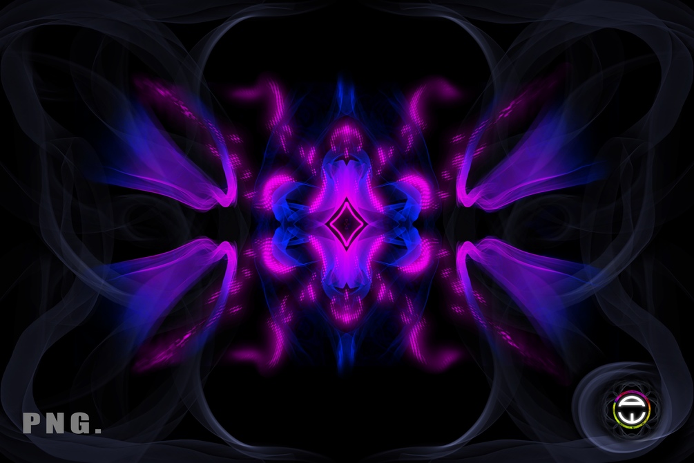 This vibrant digital abstraction is a futuristic visualization of energy and consciousness. The symmetrical pattern of neon shades of purple, pink, and blue creates a hypnotic effect, resembling a pulsating heart or a spiritual center. Glowing lines and fractal elements give the image a sense of depth and motion, symbolizing the connection between the soul and the cosmos.